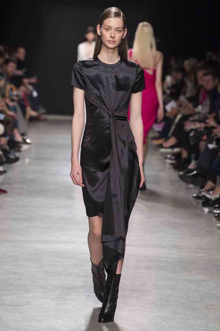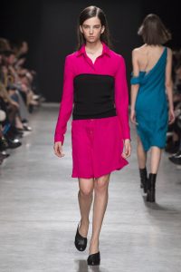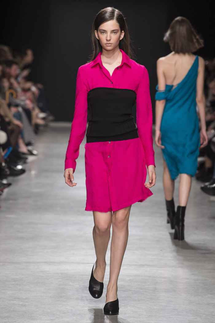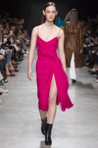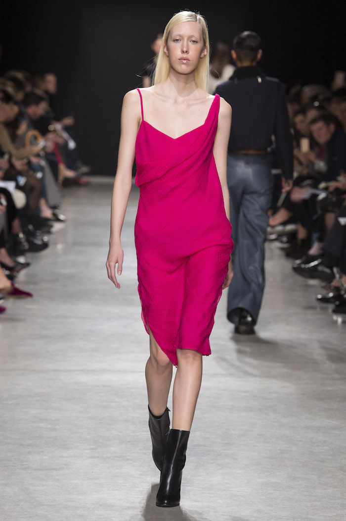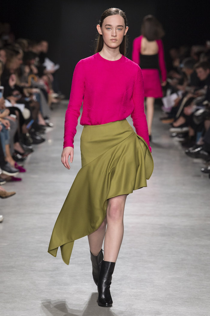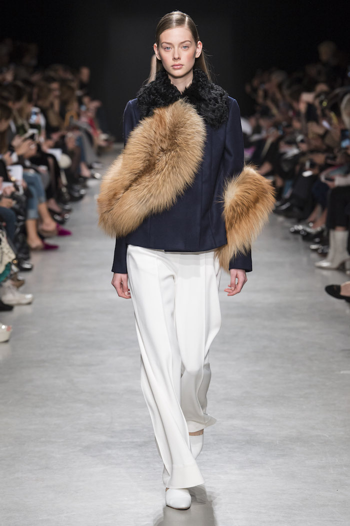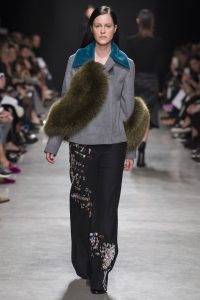 Pour nous rappeler de la saison hivernale, des magnifiques étoles en fourrure accompagnent les modèles. Un autre point marquant, Adam Andrascik confirme bien la tendance en couleur pour la saison: on y voit les deux couleurs fétiches : le fushia et le jaune moutarde.