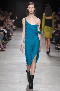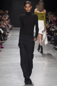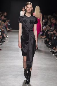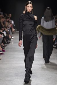 Comme résultat la collection présentée est géniale et simple en même temps. On y voit les modèles bien connu par son élégance ; un pantalon avec une large coupe, accordé avec un col-roulé noir, ce qui fera une excellente pièce dans la garde robe hebdomadaire d’une citadine moderne. Tandis que des belles robes , légères et un peu asymétriques , iront bien pour les sorties nocturnes à la parisienne. ( ici nous sommes loin des robes somptueuses de chez Elie Saab).